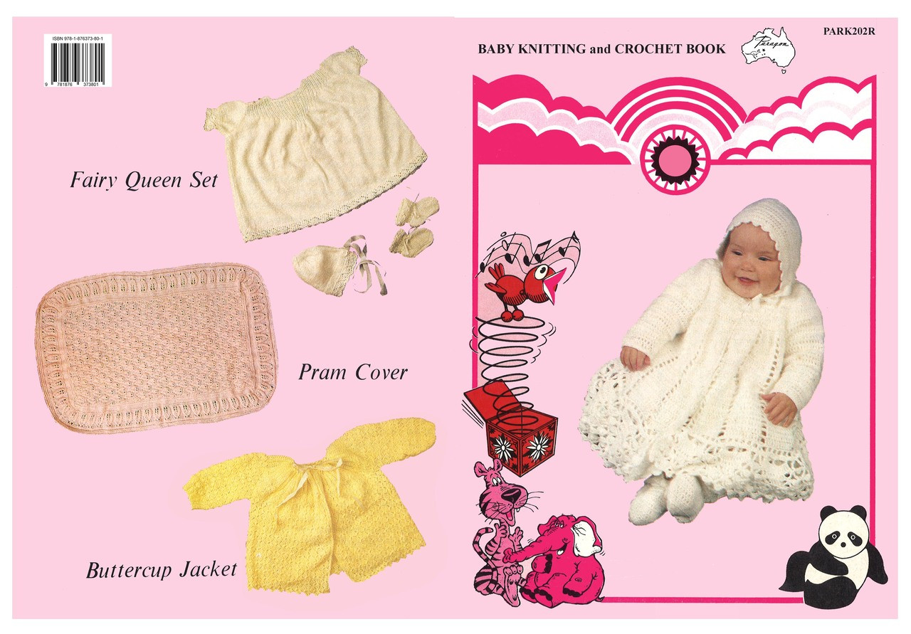 4 knitting and 5 crochet patterns for Baby in 3 or 4ply yarn. Knitted Matinee Jacket in Acorn Stitch, Fairy Web Shawl (127cm square), Fairy Queen Set (Dress, Bonnet and Bootees), and Pram Cover. Crocheted Lollipop Dress, Butterfly Matinee Jacket, Lacy Layette (Dress, Jacket, Bonnet and Bootees), Rose Jacket and Buttercup Jacket. (16 pages)
